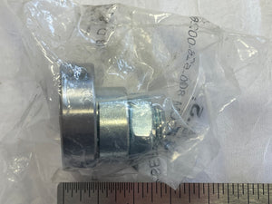 Upthrust roller with steel roller surface for integral track; eccentric axle has 1/4" shoulder; includes hex jamb nut.